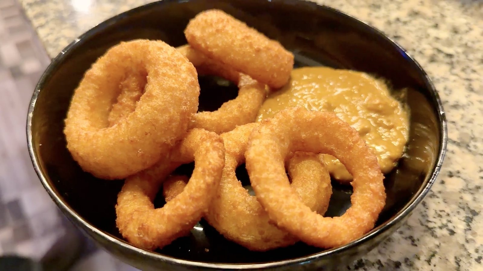 | Portion Onion Rings (a/c) mit Tomaten-Curry-Chutney |