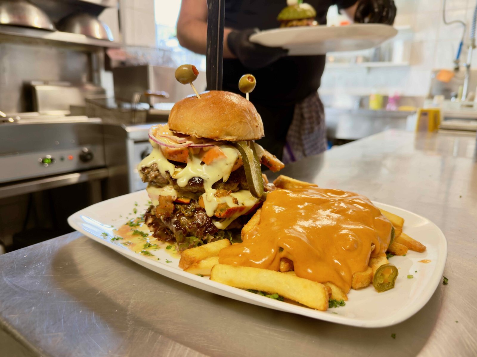| „Thor“ Burger 🌱 Dinkel Bun / 2 Vegane Pattys / V – Cheddar / Jalapenos / Röstzwiebeln / Chipotle BBQ Soße (a/f/2) |