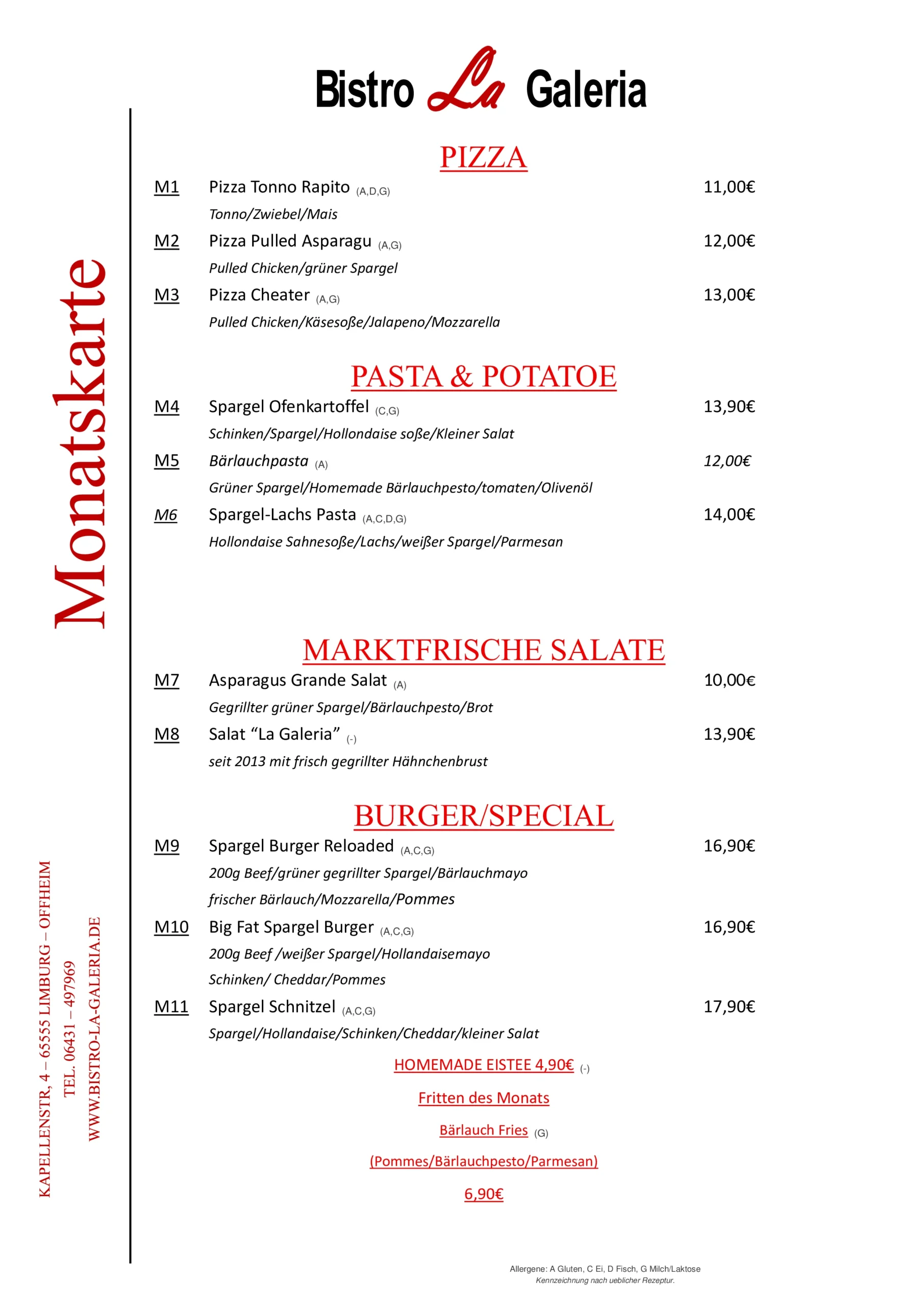 | Pizza La Galeria (a1/g) Peperoniwurst (2/9/10/12) / Paprika Zwiebeln / Champignons / Knoblauch |